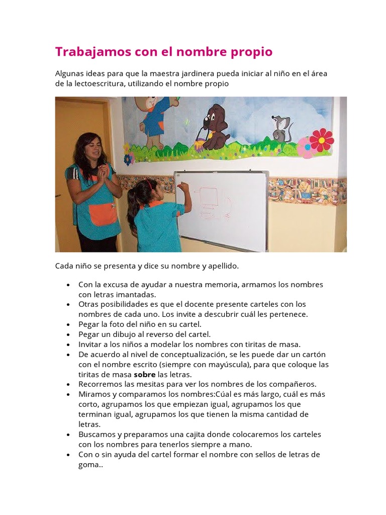 Cómo trabajar con los nombres propios de los niños para iniciarlos en la lectoescritura PDF