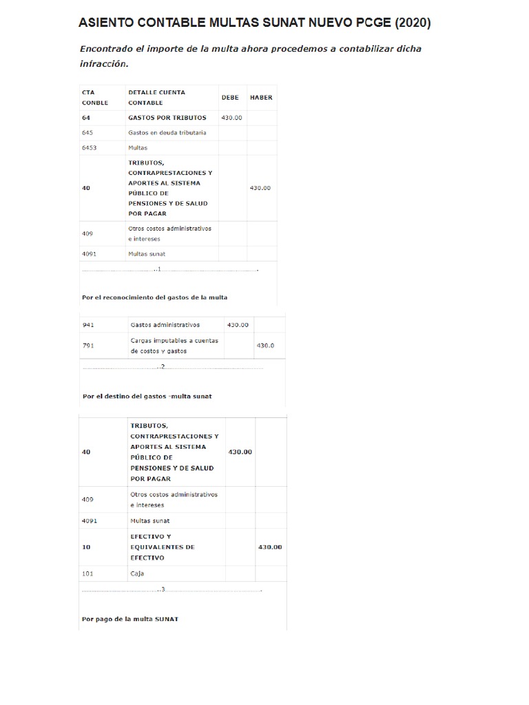 Asiento Contable de Multa A SUNAT PDF