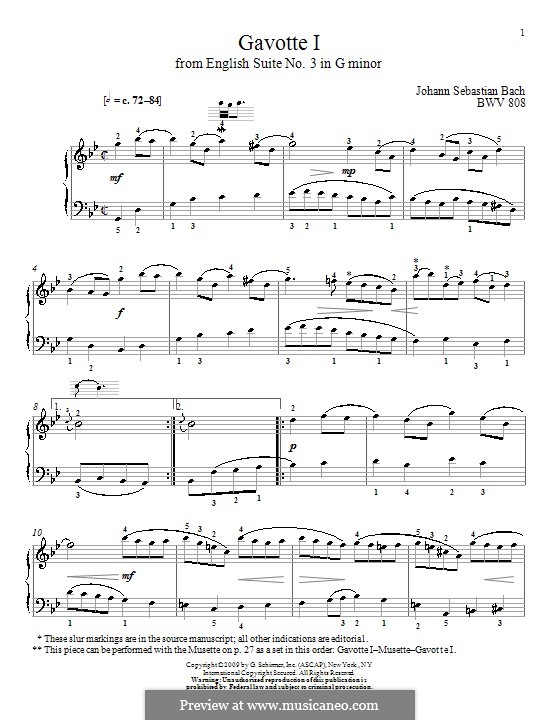 Share, download and print free sheet music of Gavotte And Musette (From English Suite No.3 In G Minor, Bwv 808) Johann Sebastian Bach for piano, guitar, flute and more with the world's largest community of sheet music creators, composers, performers, music teachers, students, beginners, artists and other musicians with over 1,000,000 sheet digital music to play, practice, learn and enjoy.