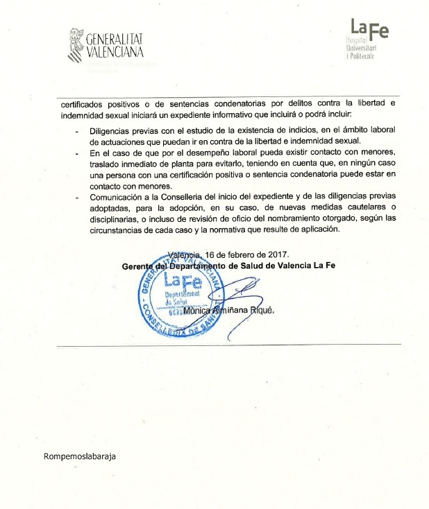 Al objeto de dar cumplimiento a dicha exigencia, se ha publicado con fecha 14 de Noviembre de 2016 en el DOCM nº 221 la Resolución de 26/10/2016, de la Dirección Gerencia del SESCAM para la aplicación del artículo 13.5 de la Ley Orgánica 1/1996, de 15 de enero, de Protección Jurídica del Menor, tras la modificación realizada por la Ley 26/2015, de 28 de julio, a los profesionales.