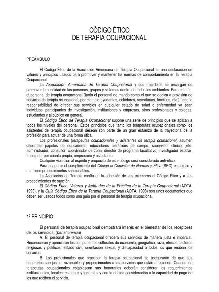 Codigo De Etica Terapeuta Ocupacional EDUCA