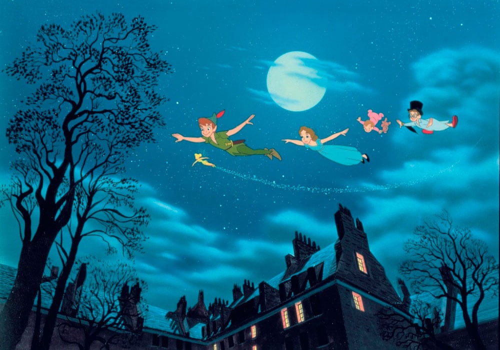 A los niños les encantaba escuchar historias sobre él y Peter mismo venía volando y se sentaba en el alféizar de la ventana de la guardería para escuchar las historias. Una noche, Peter les pidió a los niños que lo acompañaran a Nunca Jamás y Wendy, encantada de escuchar esto, no lo dudó ni un segundo. Entonces les enseñó a volar.
