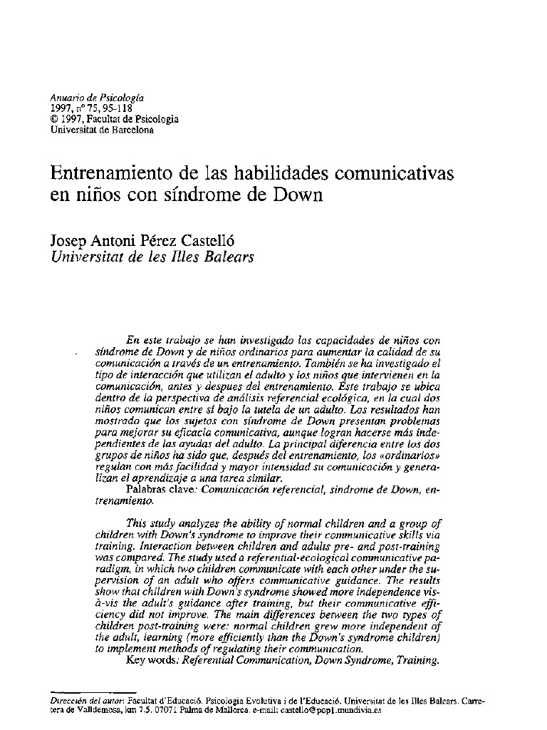 Entrenamiento de Las Habilidades Comunicativas PDF Discapacidad intelectual Información