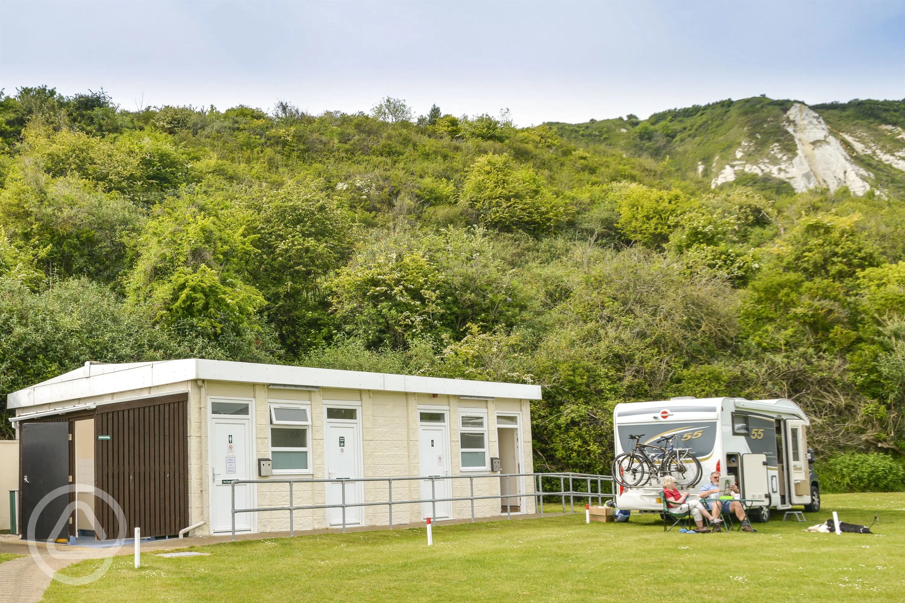 Description. Pitches: 16 caravan 22 tents. Opening Dates this year: 01/03/2024 to 31/10/2024. The caravan and camping park is situated in a unique position - nestling beneath the white cliffs of Folkstone. The site provides breathtaking views of the cliffs and the English channel, Wear Bay and the town of Folkstone.