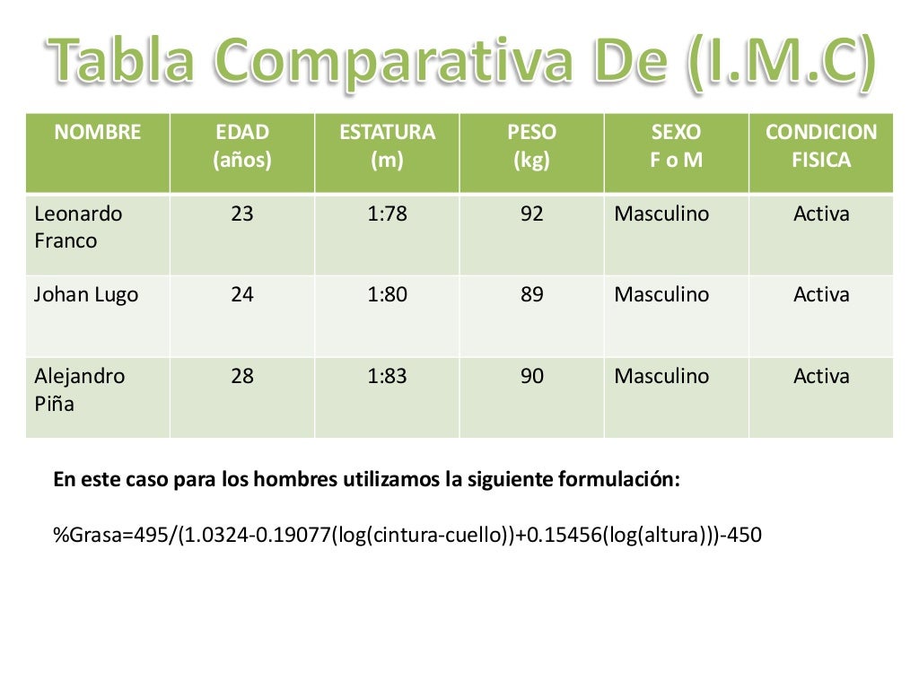 Lista 94+ Foto Indice De Masa Corporal Hombres Tabla Lleno