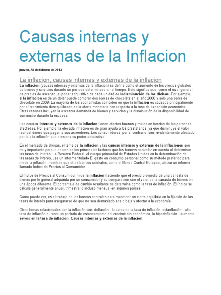Causas Internas y Externas de La Inflacion PDF Inflación Ciencias económicas
