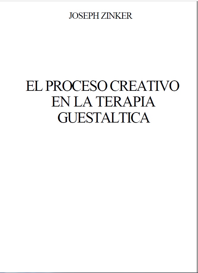 El proceso creativo en la terapia gestáltica El proceso creativo en la terapia gestáltica. Autor/a. Zinker, Joseph. Fecha de publicación. 19 de Julio de 1979. Editorial. Buenos Aires: Ed. Paidos, 1979. Libros.. ¿Qué es la AETG? ¿Qué es la Terapia Gestalt? Cómo asociarte; Formación. Directorio de Asociadas/os; Directorio de escuelas;