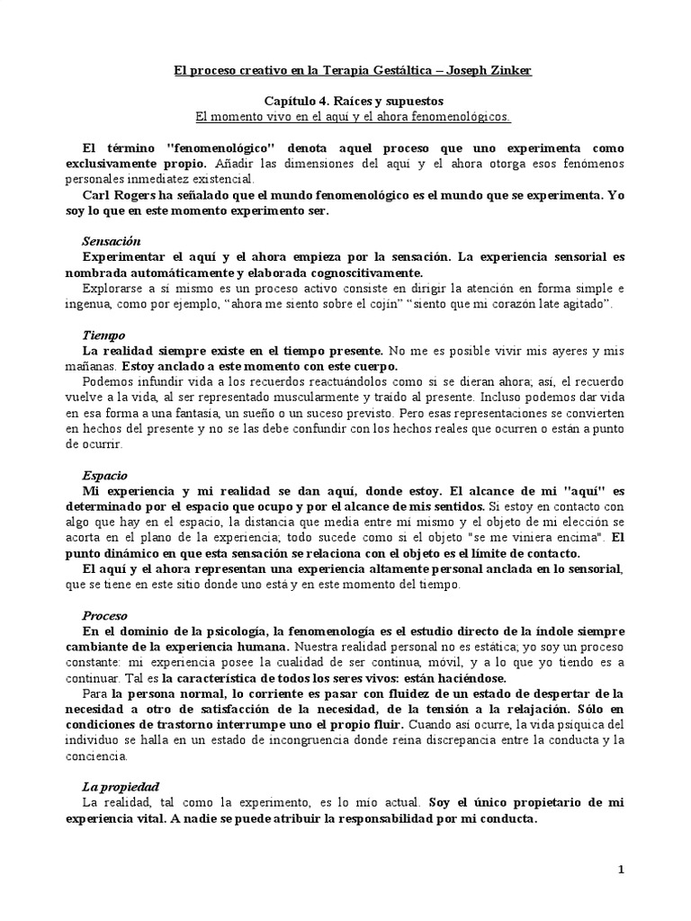 4.11 El Proceso Creativo en La Terapia Gestaltica - Zinker | PDF | Terapia Gestalt | Psicoterapia. Scribd es red social de lectura y publicación más importante del mundo.